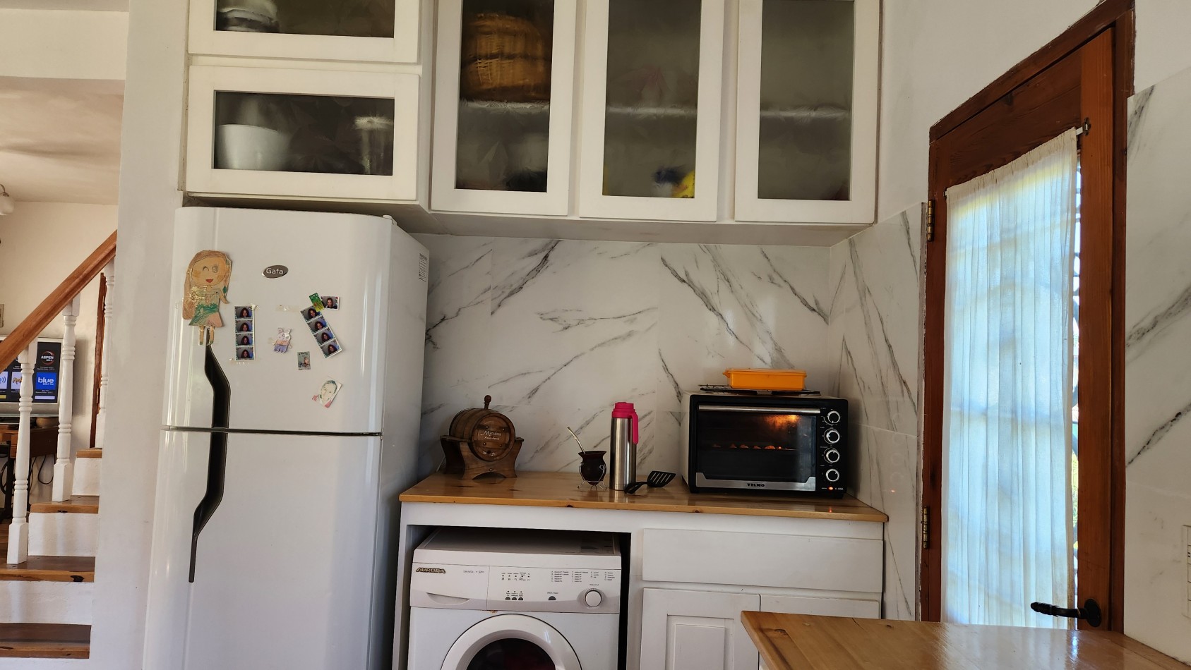En la parte posterior de la construcción, saliendo desde la cocina, se eleva un piso para galería a terminar.